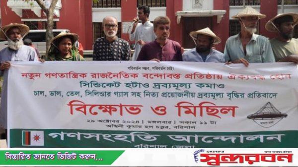 নিজস্ব প্রতিবেদক:: চাল, ডাল, তেল, সিলিন্ডার গ্যাসসহ নিত্য প্রয়োজনীয় দ্রব্যমূল্য বৃদ্ধির প্রতিবাদে বিক্ষোভ ও মিছিল অনুষ্ঠিত হয়েছে।মঙ্গলবার (২৯ অক্টোবর) বেলা ১১টায় বরিশাল নগরের অশ্বিনী কুমার হল চত্বরে গণসংহতি আন্দোলনের আয়োজনে বিস্তারিত ...